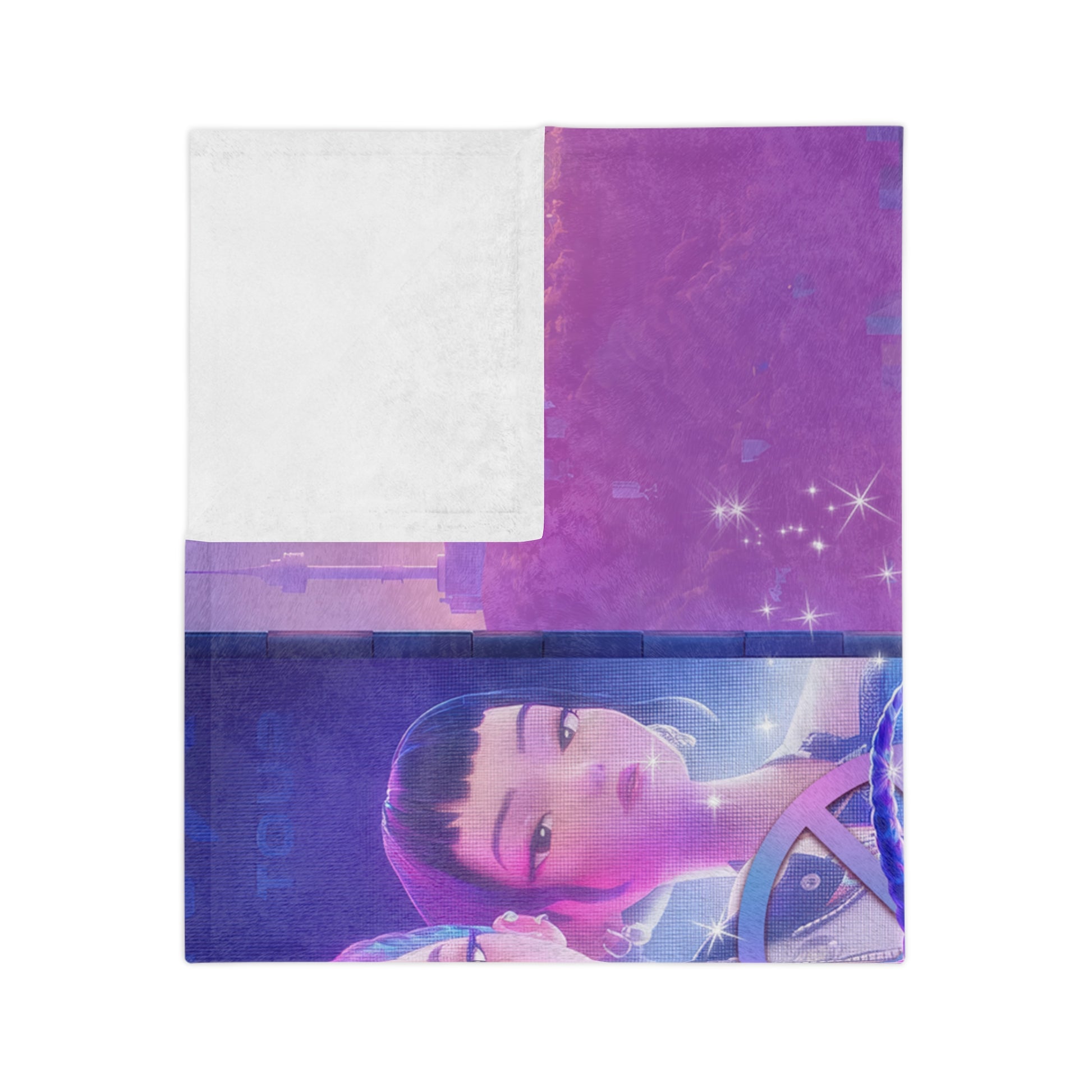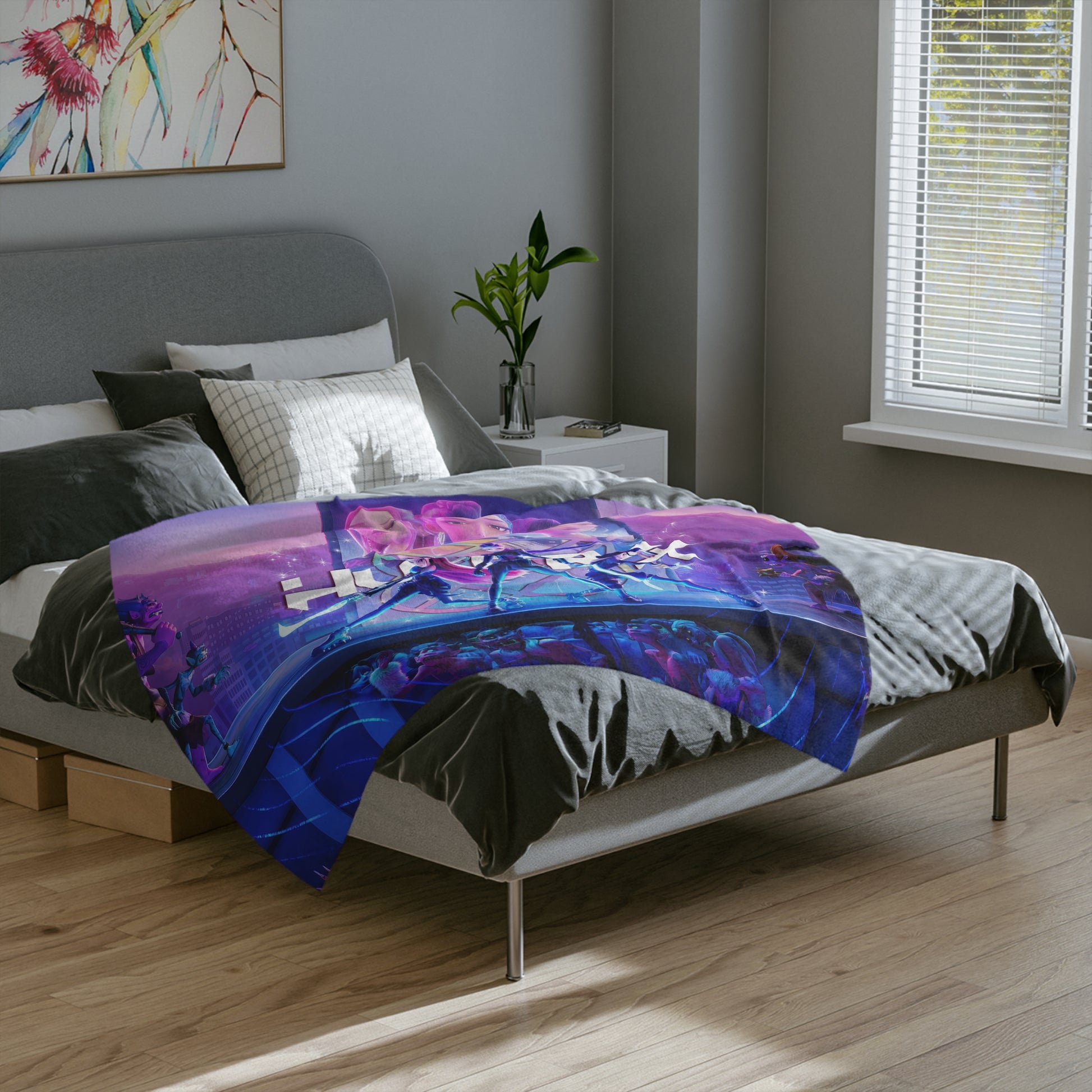 Velveteen Microfiber Blanket K-Pop Inspired Girl Demon Hunter, Dark Fantasy Idol Illustration, Gift, Fans