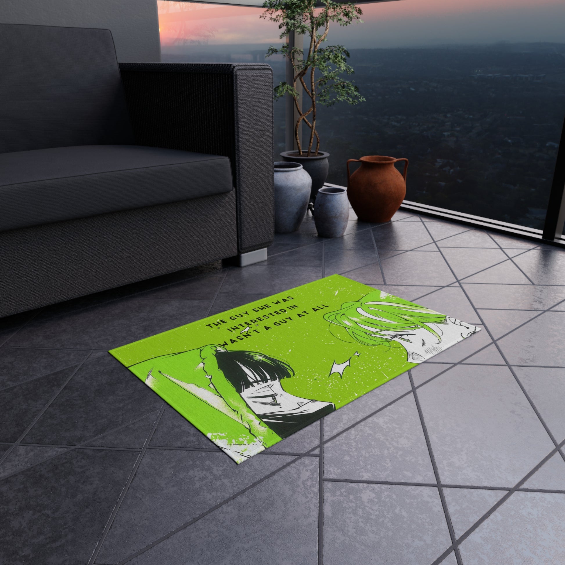 Vibrant Outdoor Rug The Guy She Was Interested In Wasn't A Guy - Unique Rug for Indoor/Outdoor Use, Mitsuki, Aya, Anime Yuri, Green Anime
